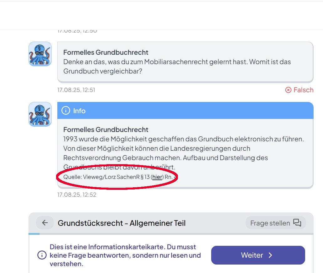 Jede Karte fügt sich in einen linearen Lernpfad, der Dich vom Überblick eines jeden Themas in seine Tiefe führt. Alle Inhalte sind von Juristinnen geschrieben, didaktisch strukturiert, prüfungsrelevant aufbereitet und werden laufend gepflegt. So lernst Du strukturiert, behältst den roten Faden und kommst schneller vom Lesen ins Anwenden & Wiederholen.